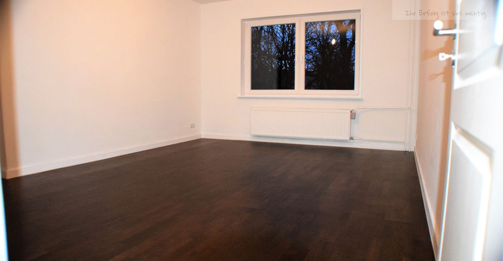 - Echtholzparkett Räuchereiche von Hinterseer Berlin, verklebt, also für die Ewigkeit verlegt, mit 8 cm Holzleisten in Weiß, im Wohn/Schlafraum, Küche, Flur und Abstellmöglichkeiten
